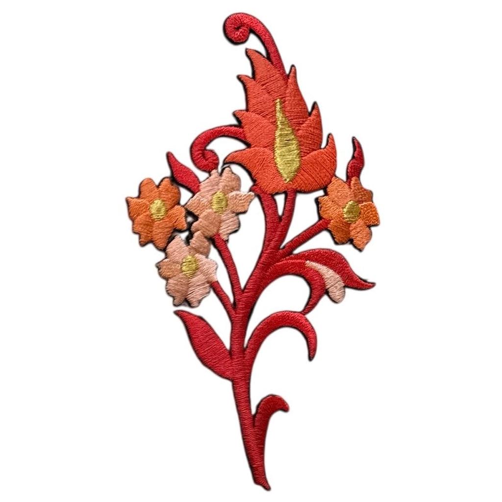 Oranssi kukkakangasmerkki loistaa kuin auringonnousu, täynnä energiaa ja lämpöä. Sen pirteä sävy tuo mukanaan iloa ja rohkeutta, ja kukkien yksityiskohdat hehkuvat kuin liekit.